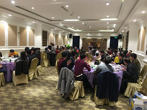 聚餐活動(dòng)開(kāi)始,總經(jīng)理吳旭文先生發(fā)表了一個(gè)簡(jiǎn)短的講話,首先是感謝貴賓及親朋好友的到場(chǎng)祝賀;然后是簡(jiǎn)短講述了公司的發(fā)展歷程,以及接下來(lái)的公司的開(kāi)發(fā)和規(guī)劃。對(duì)所有為公司的發(fā)展做出貢獻(xiàn)的老員工和新員工都表達(dá)了感謝之意。