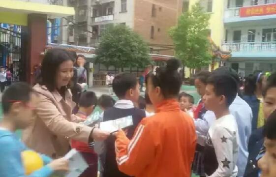 項目負責(zé)人解冰為學(xué)生發(fā)放兒童食品安全手冊