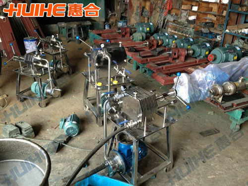 4、板框過(guò)濾器的泵(或可用防爆電機(jī))及輸入管部件,采用快裝式連接,拆卸清洗方便。